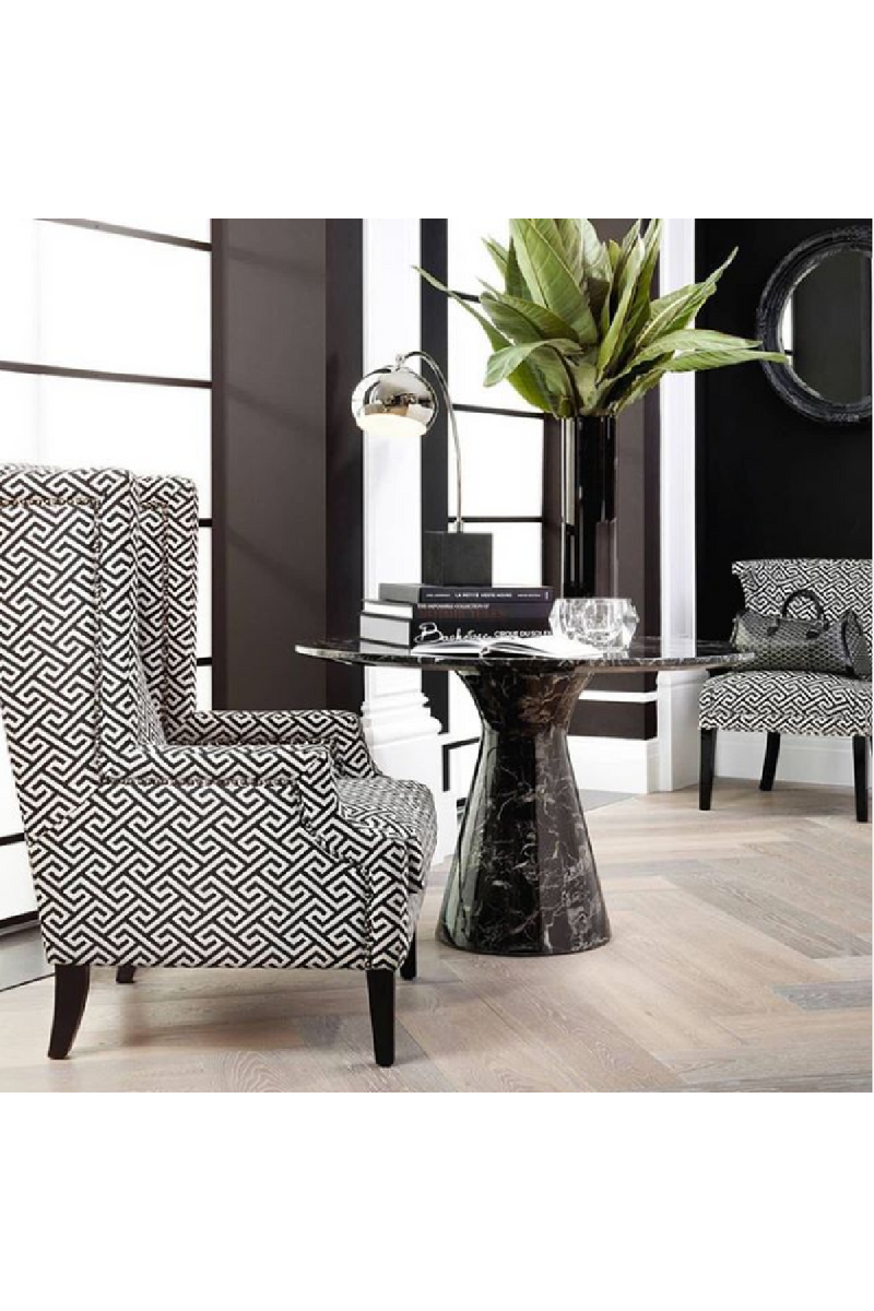 The remarkable Turner Dining Table is crafted from marble and features characteristic swirls and veins. Dine with your guests in style with this luxurious dining room piece. This dining table will accommodate four chairs for dining.