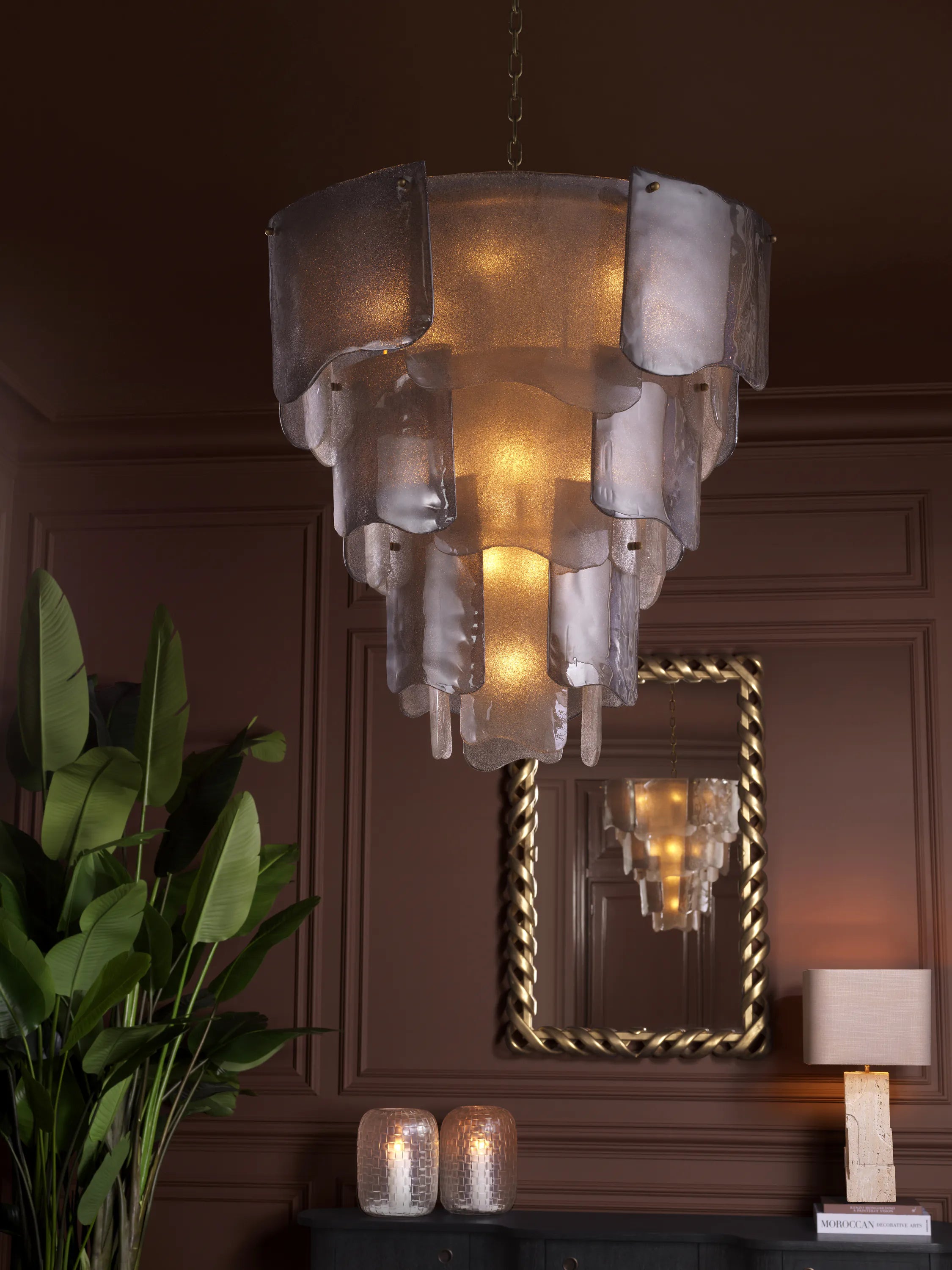 Lámpara de araña moderna de cristal escalonado Asinara